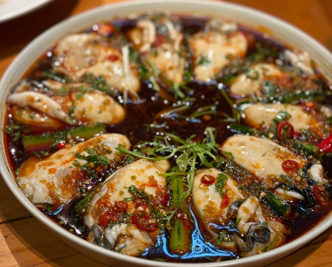 Three sides face the sea; more than a thousand kilometers of coastline breathe straight into the kitchen. Volcanic soils enrich the flats, so Zhanjiang oysters grow large and clean. Steamed, poached, or kissed by charcoal, they need little more than scallion, ginger, and a dash of soy—the sea’s own sweetness does the talking. The same restraint shapes steamed flower crab, stir-fried octopus with sand ginger, and vermicelli clams: do less, let flavor arrive.